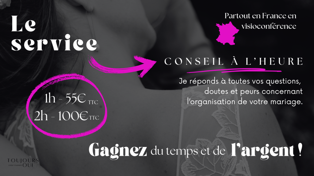 En faisant le paiement, vous acceptez les CGV de Toujours Oui – Wedding Coach